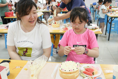 活動現場,天真爛漫的孩子和爸爸媽媽們在烘焙老師的專業指導下,一起開動腦筋,緊密配合,制作屬于自己的蛋糕。孩子們認真地給蛋糕抹著奶油,用心地擺放著卡通人物、水果、餅干等小裝飾,與此同時,家長們在一旁幫忙,臉上洋溢著幸福的笑容,空氣中充滿了香甜的奶油味道,濃濃的生活氣息感染著現場的每一個人。這和諧融洽的配合,是孩子和家人之間的心靈交匯,從孩子歡樂的笑聲中,在家長專注和幸福的表情中,美妙的親子關系不禁在心間流淌。