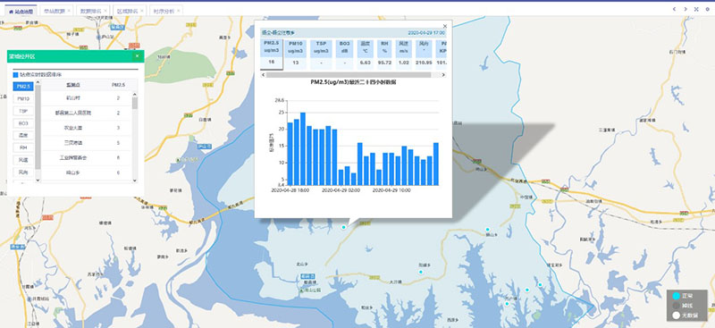 城市揚塵在線監測平臺是我公司自主研發的全天候城市室外顆粒物監測系統。通過系統建設,對PM2.5、PM10、噪聲等監測因子進行分類整合,同時對原始數據、監控數據、站點數據、操作數據、報警數據、用戶數據和運維數據等進行有效整合,實現結果的直觀展示與發布,可以了解區域內揚塵的現狀、突出的區域揚塵問題等,為制定區域聯防聯控規劃提供依據,具備在線瀏覽實時數據功能、實時報警功能,發現問題及時發布報警信息。