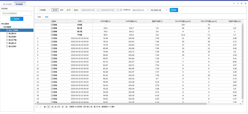 實現了對揚塵監測站的數據采集、對比、分析、展示等功能,對監測站上傳的數據進行實時監控、運維記錄、對歷史數據進行查詢,并根據上傳的數據按分鐘、小時、日、月、季、年均值數據計算,為客戶提供數據上的支持和幫助。