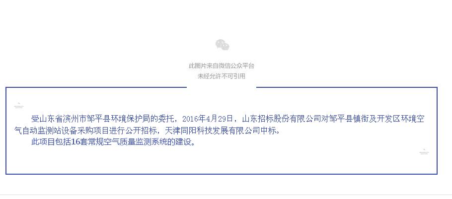 同陽科技中標山東省鄒平縣鎮街及開發區環境空氣自動監測站項目