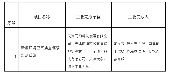 更新時間: 點擊:16926 所屬欄目:公司新聞 Update Time: Hits:16926 Belong Column:News目前,2016年度濱海新區科學技術獎評審結果已出。在56個獲獎項目公示名單中,涉及生物醫藥、環境保護、汽車制造、石油勘探、信息化、現代農業等多個方面,全方位展示了濱海新區城市、社會、經濟發展中的科技成就。由新區企業天津同陽科技發展有限公司等參與完成的“新型環境空氣質量連續監測系統”獲得科學技術進步獎一等獎。同陽科技是一家以自主創新為動力、以科技發展為核心的高新技術企業。公司產品覆蓋水、氣、土壤、聲等環境在線監測需求及環保物聯網建設,主要包括煙氣排放在線自動監測系統、基于光纖的空氣質量連續監測系統、PM2.5自動換膜采樣系統、工業廢氣在線監測系統、惡臭在線監測系統、機動車尾氣遙感監測系統等,已在美國成立研發子公司。