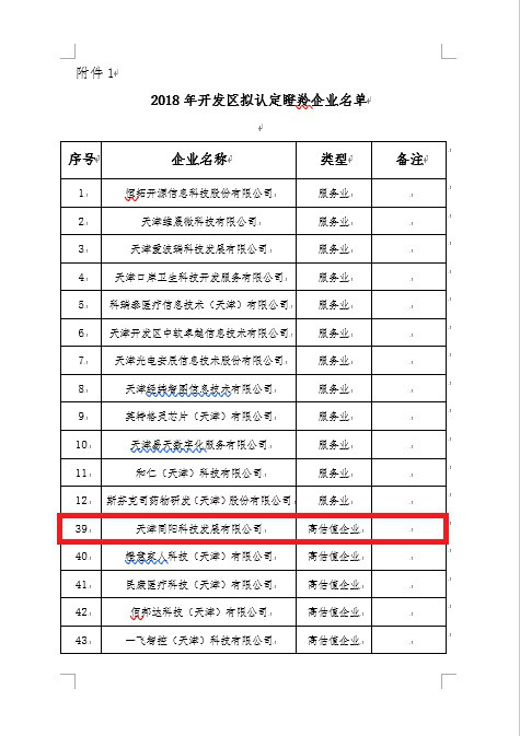 更新時間: 點擊:16704 所屬欄目:公司新聞 Update Time: Hits:16704 Belong Column:News日前,天津經(jīng)濟技術(shù)開發(fā)區(qū)根據(jù)《天津經(jīng)濟技術(shù)開發(fā)區(qū)促進科技重點企業(yè)發(fā)展的實施辦法》(津開發(fā)[2017]45號)有關(guān)規(guī)定,經(jīng)企業(yè)申報、專家評審,認定天津同陽科技發(fā)展有限公司等企業(yè)為瞪羚企業(yè)。