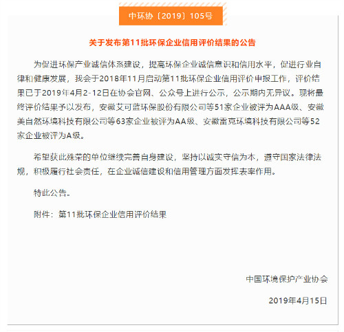 更新時間: 點擊:14846 所屬欄目:公司新聞 Update Time: Hits:14846 Belong Column:News近日,中國環境保護產業協會公示了“第11批中國環境保護產業行業企業信用等級評價結果”,天津同陽科技發展有限公司榮獲中國環保企業“AAA級信用企業”稱號。