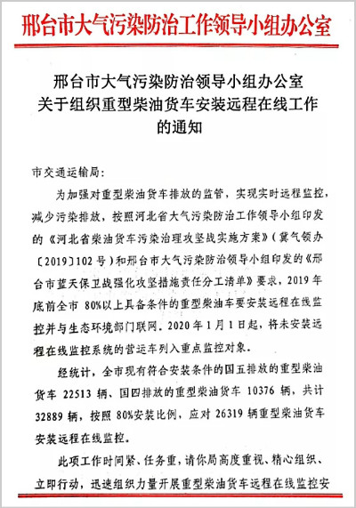 河北省邢臺市率先啟動重型柴油貨車安裝遠程在線監控系統的相關測試入圍工作,并對OBD遠程監控廠家設備進行產品資質評比及實車動態比對測試,天津同陽科技遠程監控設備成功入圍合格供應商名錄。