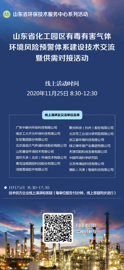 線上會議 | 同陽科技邀您參加山東省化工園區有毒有害氣體環境風險預警體系建設技術交流暨供需對接活動