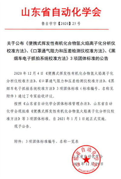 近日,山東省自動化學會正式發布并實施3項團體標準,其中《T/SDZDH 001-2020 便攜式揮發性有機化合物氫火焰離子化分析儀校準方法》和《T/SDZDH 003-2020黑煙車電子抓拍系統校準方法》由同陽科技參與起草。