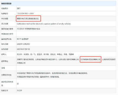 《T/SDZDH 003-2020黑煙車電子抓拍系統校準方法》以《HJ845-2017 在用柴油車排氣污染物檢測方法及技術方法》和《JJF(京)72-2019黑煙車電子抓拍系統校準規范》為參考依據,對黑煙車抓拍產品的校準方法和標準做出了補充和細化,對于黑煙車抓拍產品校準規范化有極其重要的意義,大幅提升了黑煙車抓拍產品在校準的精確度和準確性。