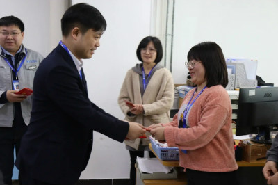 更新時間: 點擊:15917 所屬欄目:公司新聞 Update Time: Hits:15917 Belong Column:News日月開新元,天地又一春。2021年2月19日(正月初八),同陽人迎來了辛丑牛年的第一個工作日。大家迅速調(diào)整狀態(tài),投入到有序的工作中,以全新的姿態(tài)迎接2021年更大的挑戰(zhàn)。在這開工大吉的日子,公司總經(jīng)理陳文亮攜管理團隊深入到各部門,為同事們逐個派發(fā) “開工利是”紅包,并為大家送去新春的祝福和濃濃的關(guān)懷,現(xiàn)場氣氛熱鬧非凡。