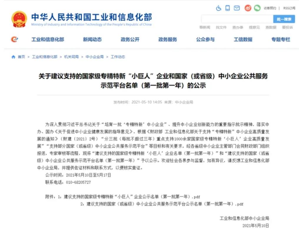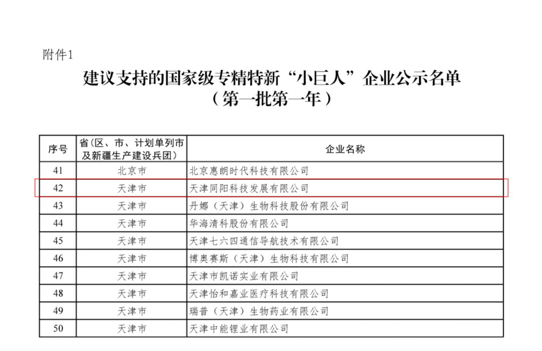 “小巨人,大作為” | 同陽科技入選工信部首批建議支持的國家級專精特新“小巨人”企業名單