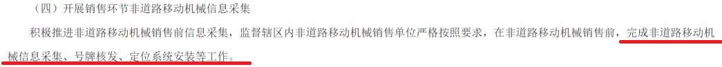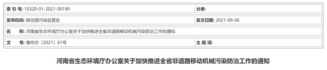 河南省生態(tài)環(huán)境廳于近日發(fā)布的《河南省生態(tài)環(huán)境廳辦公室關(guān)于加快推進(jìn)全省非道路移動(dòng)機(jī)械污染防治工作的通知》中提出力爭(zhēng)在2021年底前完成20萬(wàn)臺(tái)非道路移動(dòng)機(jī)械的信息采集、環(huán)保標(biāo)識(shí)下發(fā)和現(xiàn)在監(jiān)控設(shè)備安裝等工作。經(jīng)過(guò)深度治理,非道路移動(dòng)機(jī)械顆粒物在線數(shù)據(jù)可達(dá)到《非道路柴油移動(dòng)機(jī)械排氣煙度限值及測(cè)量方法》(GB36886-2018)規(guī)定的Ⅲ類限值,并對(duì)顆粒物排放數(shù)據(jù)實(shí)現(xiàn)在線監(jiān)測(cè)數(shù)據(jù)與省、市管理平臺(tái)聯(lián)網(wǎng)。還同時(shí)要求了嚴(yán)格執(zhí)行非道路移動(dòng)機(jī)械的監(jiān)督抽查工作等內(nèi)容。