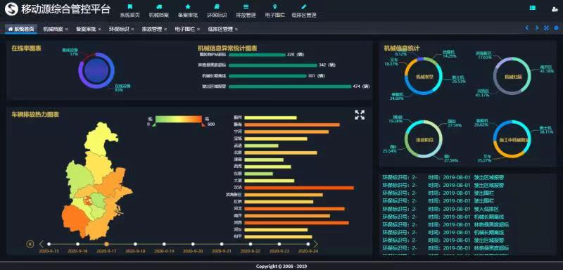 非道路移動(dòng)機(jī)械平臺(tái)可以查看全省/市的機(jī)械臺(tái)帳,以及對(duì)機(jī)械的遠(yuǎn)程監(jiān)管。掌握全部非道路移動(dòng)機(jī)械的排放階段、工況狀態(tài)、地理定位以及尾氣污染物排放情況并進(jìn)行數(shù)據(jù)分析與統(tǒng)計(jì)。還可以在線對(duì)工地電子圍欄、低排區(qū)等進(jìn)行規(guī)劃,降低非道路移動(dòng)機(jī)械在特定時(shí)間特定地點(diǎn)的污染物排放。