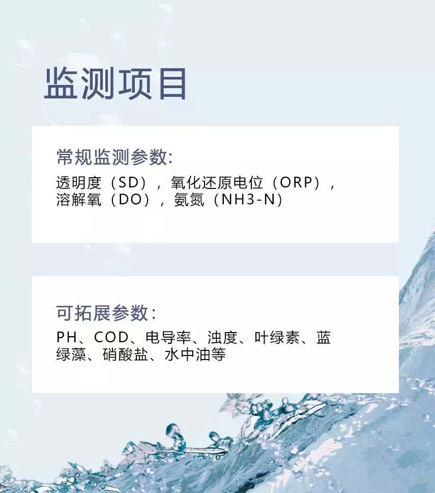 前端設(shè)備主要用于監(jiān)測(cè)黑臭水體四項(xiàng)參數(shù),監(jiān)測(cè)參數(shù)為透明度(SD)、溶解氧(DO)、氧化還原電位(ORP)、氨氮(NH3-N)、可根據(jù)現(xiàn)場(chǎng)監(jiān)測(cè)參數(shù)需求擴(kuò)展監(jiān)測(cè)電極,所有電極均采用耐腐蝕殼體自動(dòng)清潔光學(xué)部件,維護(hù)量低,穩(wěn)定性高適用于各種復(fù)雜工況環(huán)境。
