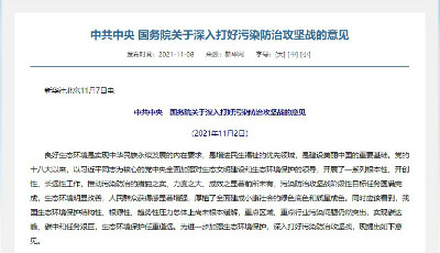 中共中央國務院關于深入打好污染防治攻堅戰的意見